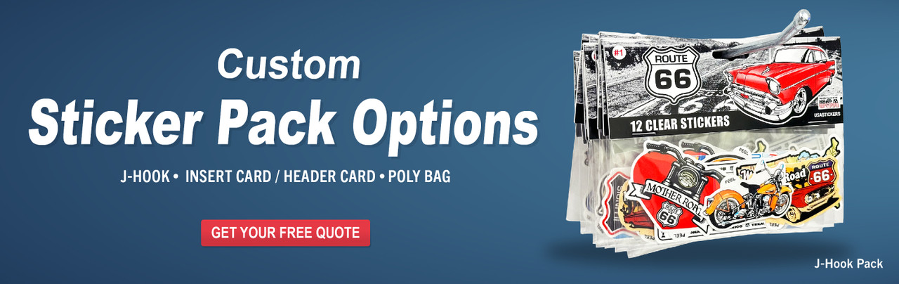 Custom sticker packs are a dynamic and visually compelling solution for both retail and promotional use. Packaged in a clear poly bag with a J-Hook header card, these packs are designed for effortless hanging and high visibility—perfect for store displays or E-commerce, trade shows, giveaways, or branded merchandise. The header card provides prime real estate for your logo and product messaging, maximizing brand exposure while adding a polished, professional presentation that grabs attention on any shelf.